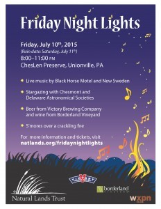 Listening to live music under the stars is an excellent way to spend a warm summer night and “Friday Night Lights at Natural Lands Trust’s ChesLen Preserve” is a great way to do it.
