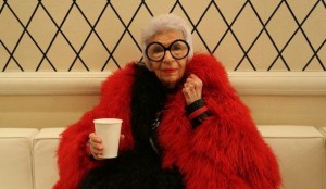 In the spirit of celebrating New York Fashion Week, I wanted to highlight an unexpected face in the world of couture. One of my all time favorite trendsetters is Iris Apfel. This 90something year old spitfire is an expert in interior design and fashion. With a resume that includes time at Women’s Wear Daily and completing several design projects at the White House, this icon is no shrinking violet when it comes to voicing her opinions. Recently interviewed for Vogue, Iris described her feelings about personal style…