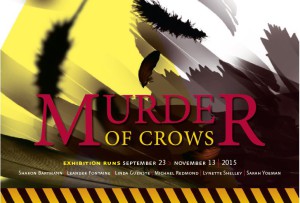 “Murder of Crows” is the theme for 6 local artists showing at The Art Trust, curated by artist Lisa Strode. Leander Fontaine often paints crows in his black and white delivers painted gestures that capture the heart and soul of the creature. His black and white paintings are brilliant, immediate impressions that are augmented with black and white tones of atmosphere. Also exhibiting at the Art Trust are the artists Lynette Shelley, Sarah Yeoman, Linda Guenste and Michael Redmond; each artist shows very different points of view, from the dramatic work of Guenste to the ethereal imagery of Yeoman and Fontaine.