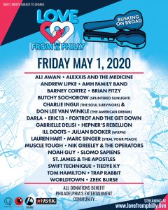 “Love From Philly” is a three-day virtual music festival which is running May 1-3 to raise money via donation for the Philadelphia Arts and entertainment community that has been impacted By COVID-19.