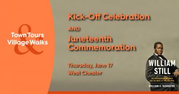 This year’s program will kick off on Thursday, June 17, with a virtual ceremony and Juneteenth Commemoration starting at 5:00 pm, followed by optional in-person walking tours at 6:45 pm at the Chester County History Center.