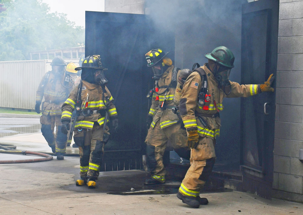 Firefighter I Students train in firefighting skills at the Chester County Public Safety Training Campus. A new ordinance passed by the Chester County Commissioners provides a county property tax rebate for volunteer members of fire companies and not-for-profit emergency medical services agencies, acknowledging the value of volunteer first responders and, importantly, encouraging others to become volunteer firefighters and EMTs. (Photos courtesy of the County of Chester)