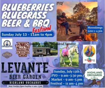 On July 13, Highland Orchards (1000 Marshallton-Thorndale Road, West Chester, www.highlandorchards.net) will host its annual “Blueberries, Bluegrass, Beers & BBQ Festival.”