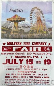 From July 15-19, the Malvern Fire Company Fair (Monument Grounds, Monument Avenue, Malvern, 610-647-0693, http://www.pa-carnivals.com) will be held from 6-10 p.m. each night.