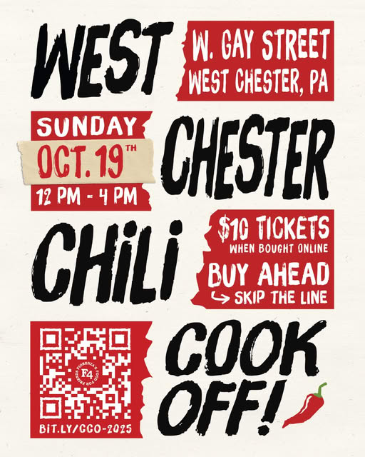 Now that crisp autumn weather has arrived, it’s a great time to enjoy outdoor events such fall festivals, historical celebrations, hayrides, wine festivals, mazes and scenic train rides.Last weekend, West Chester was supposed to be the site of a special event to determine who can make “The Best Darn Chili in Chester County!” — the site of the West Chester Rotary’s 22nd Annual Chili Cookoff (Gay and High streets, Downtown West Chester, www.westchesterchilicookoff.com).