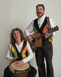 Two of a Kind are interactive children’s music performers. David and Jenny Heitler-Klevans love bringing people together and building community through music. Their beautiful harmonies accompanied by David’s powerful, rhythmic guitar playing and Jenny’s multi-ethnic percussion instruments create magic on stage.