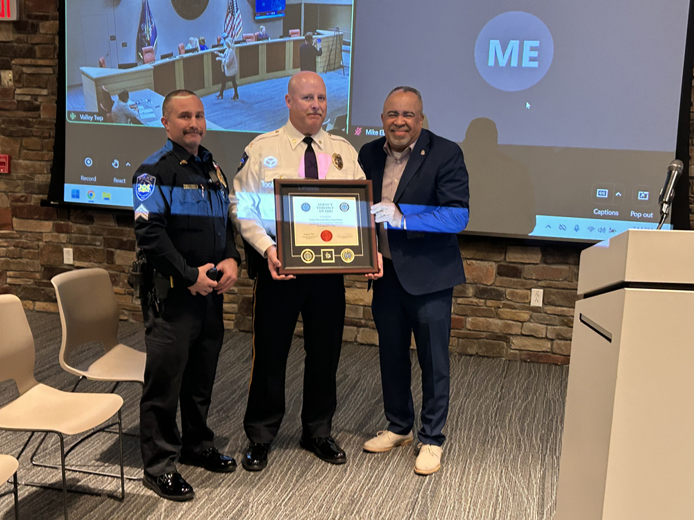 FBI-LEEDA Executive Director Jacques Battiste formally presented the award to Chief Glenn Eckman and Sergeant Timothy Parker during a recent Valley Board of Supervisors meeting, acknowledging the department’s dedication to strengthening leadership across all levels of its command staff.
