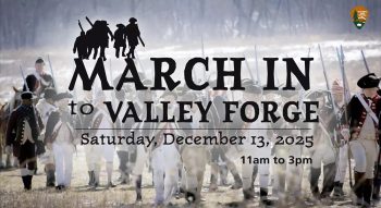 On December 13, Valley Forge National Historical Park (Route 23, Valley Forge, 610-783-1099, www.nps.gov/vafo) is presenting its annual March-In.The event, which will run from 11 a.m.-3 p.m., commemorates a major happening in the American Revolution — the arrival of George Washington and his troops to the area in 1777.