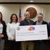 Chester County Commissioners Josh Maxwell (left), Marian Moskowitz (second right) and Michelle Kichline (right) present a check for $120,000, representing the funds raised by the Chester County Color 5K. Accepting the check are Chester County’s Director of Drug & Alcohol Services, Jamie Johnson (third right), along with COPE Program representatives Rob Gilman (center), Jackie Morales (second...