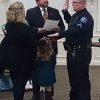 Ken Rongaus is sworn in as corporal by Mayor Matt Fetick as his family looks on.